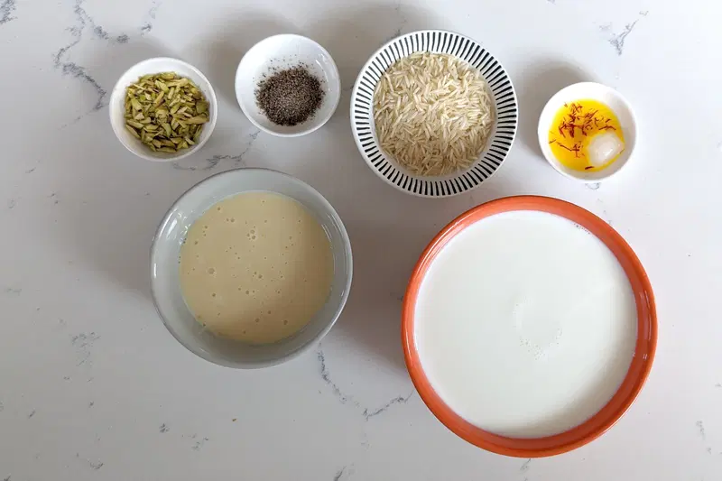 It also uses saffron and pistachios, which are a classic combination for kheer. You can easily substitute in almonds, charoli, cashews or any other nut that you prefer.