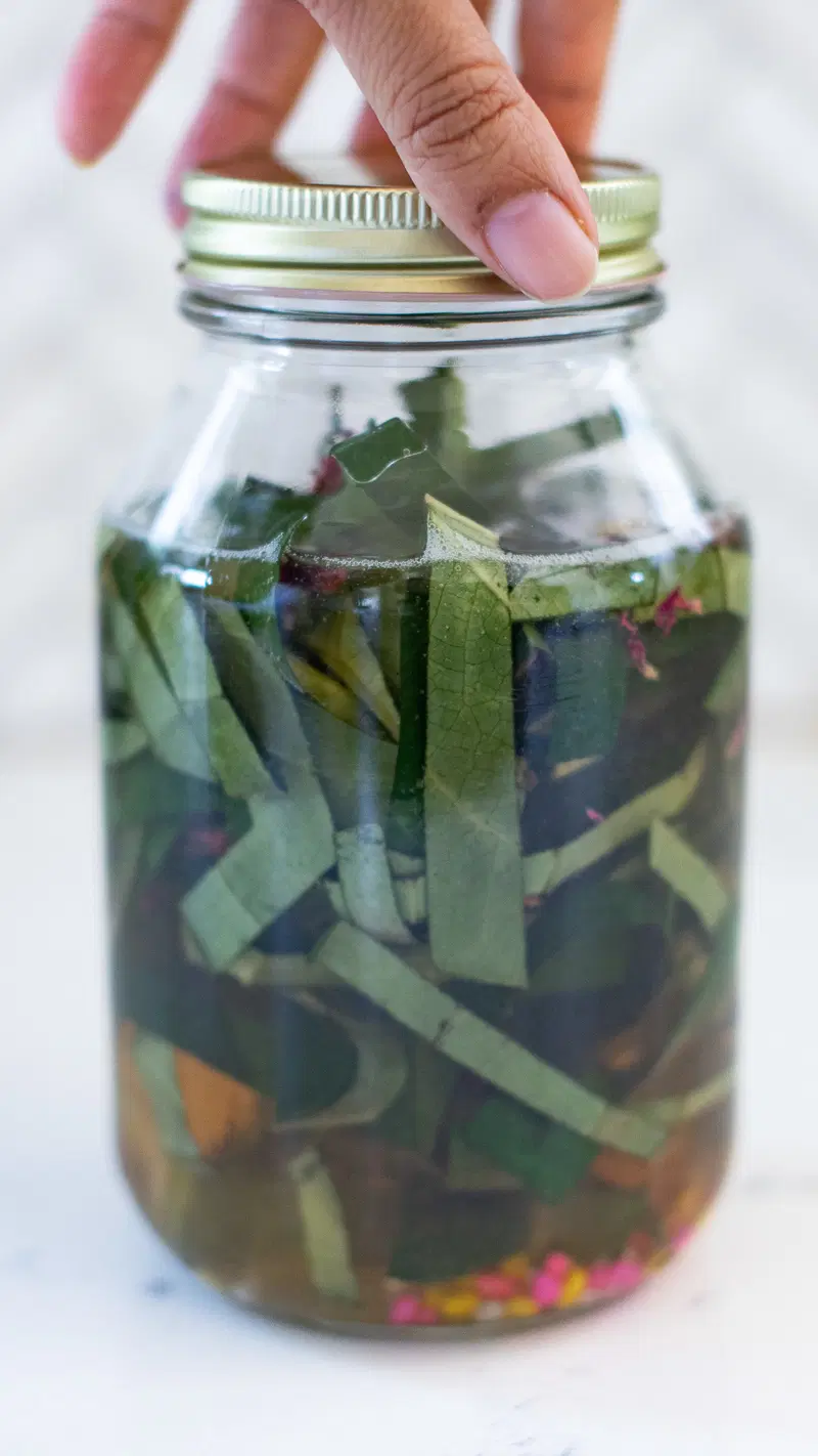 - In a large container, such as a jar, combine all ingredients and seal.